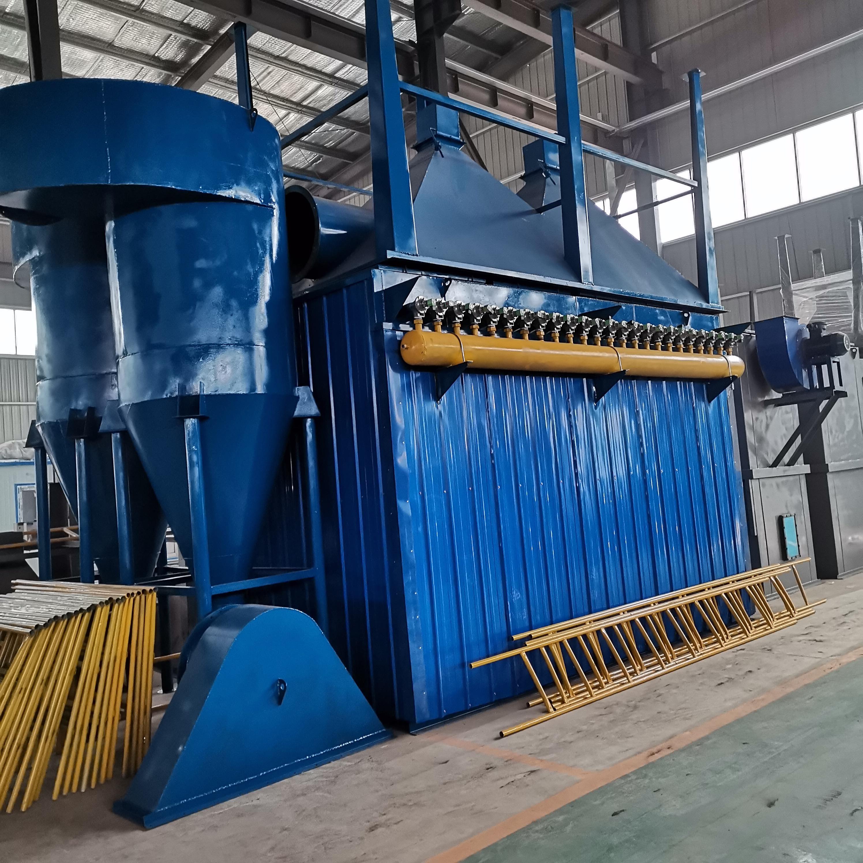 在普通操作條件下,作用于粒子上的離心力是重力的5~2500倍,所以旋風(fēng)除塵器的效率顯著高于重力沉降室。利用這一個原理基礎(chǔ)成功研究出了一款除塵效率為百分之九十以上的旋風(fēng)除塵裝置。在機械式除塵器中,旋風(fēng)式除塵器是效率最高的一種。它適用于非黏性及非纖維性粉塵的去除,大多用來去除5μm以上的粒子,并聯(lián)的多管旋風(fēng)除塵器或者布袋除塵器裝置對3μm的粒子也具有80~85%的除塵效率。選用耐高溫、耐磨蝕和腐蝕的特種金屬或陶瓷材料構(gòu)造的旋風(fēng)除塵器,可在溫度高達1000℃,壓力達500×105Pa的條件下操作。